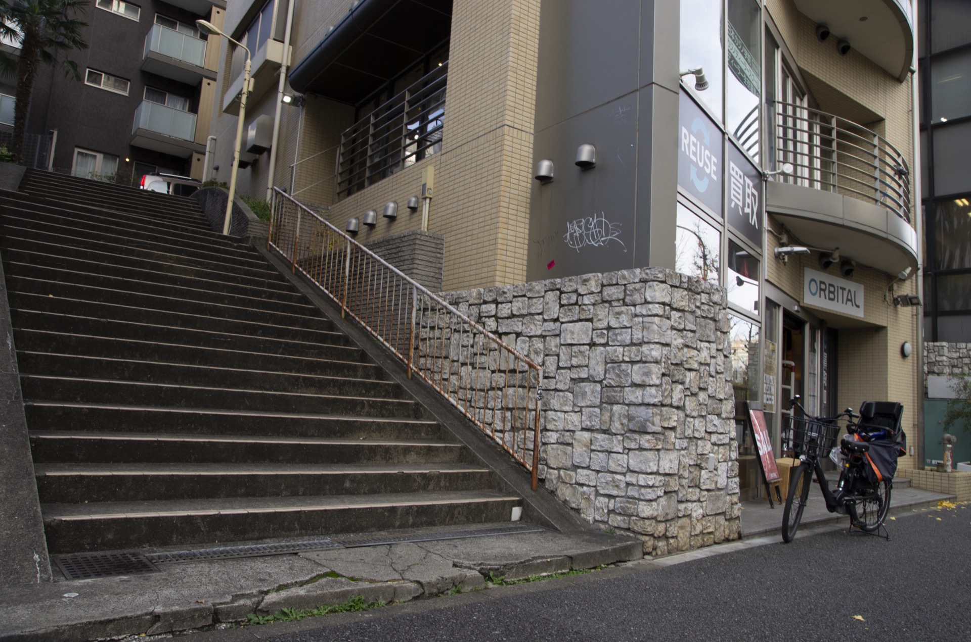 06 買取ショップを過ぎて右手を見ると、階段が見えるので登ってください。