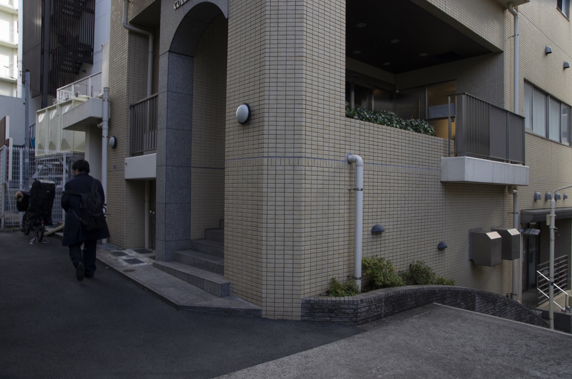 05 道なりに曲がってさらに進むと突き当りに階段があります。その手前が事務所入り口です。